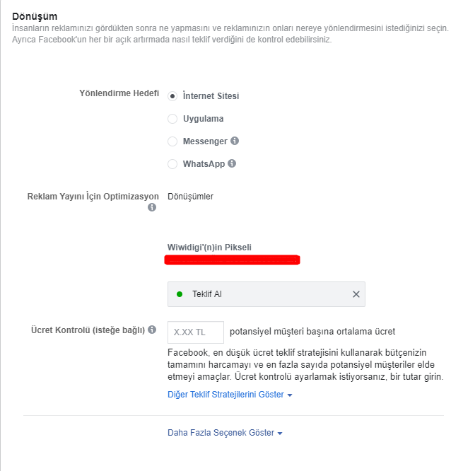 Özel dönüşüm oluşturabilmeniz için sitenize Facebook Pixel kurulumu yapmalısınız. Facebook Pixel Kurulumu Nasıl Yapılır ? yazımızı okumak isterseniz https://www.wiwidigi.com/facebook-pixel-nedir-facebook-pixel-kurulumu/ linki ziyaret edebilirsiniz.